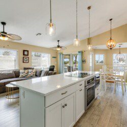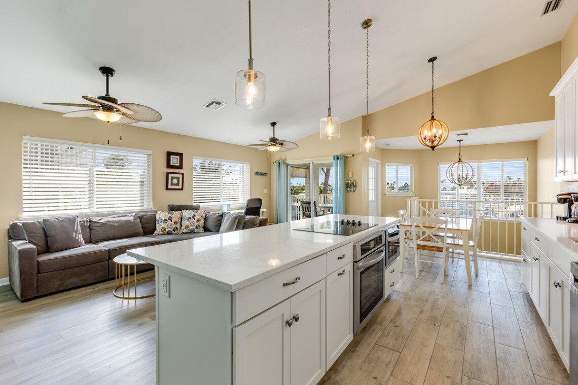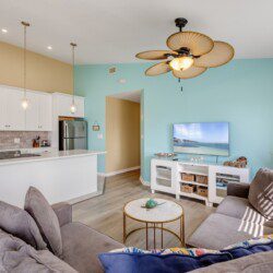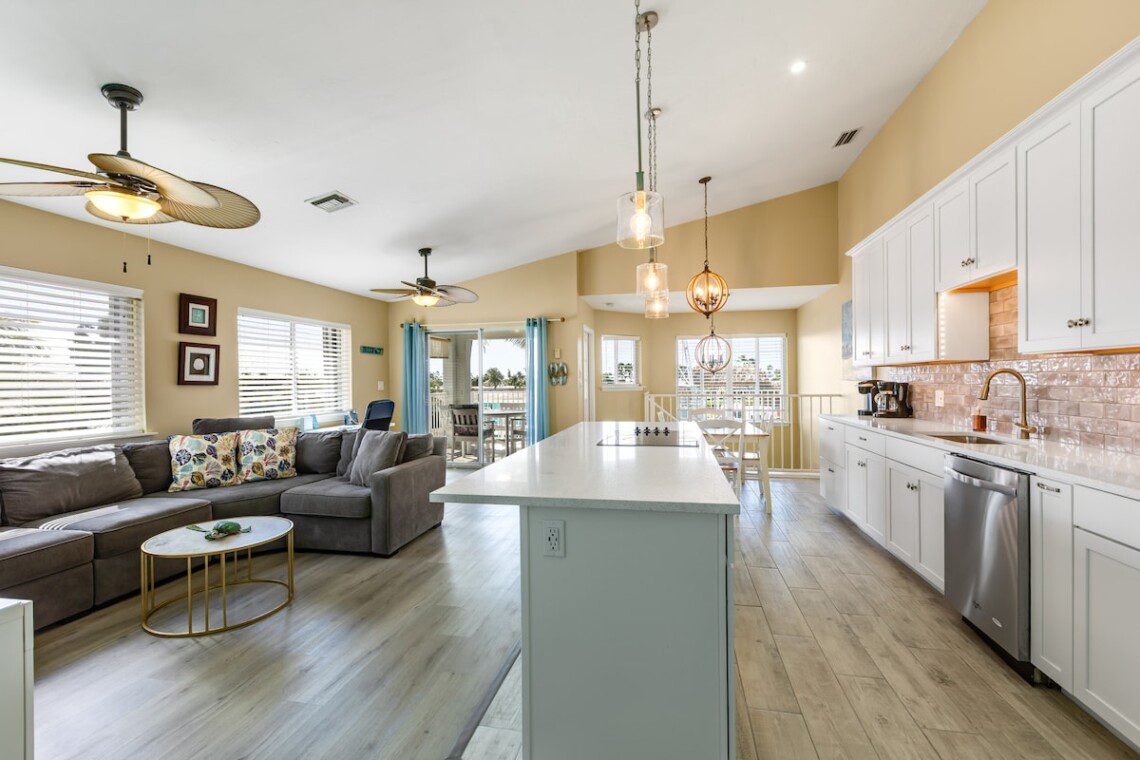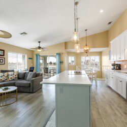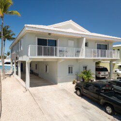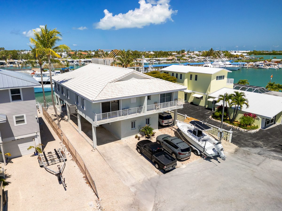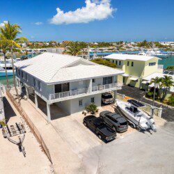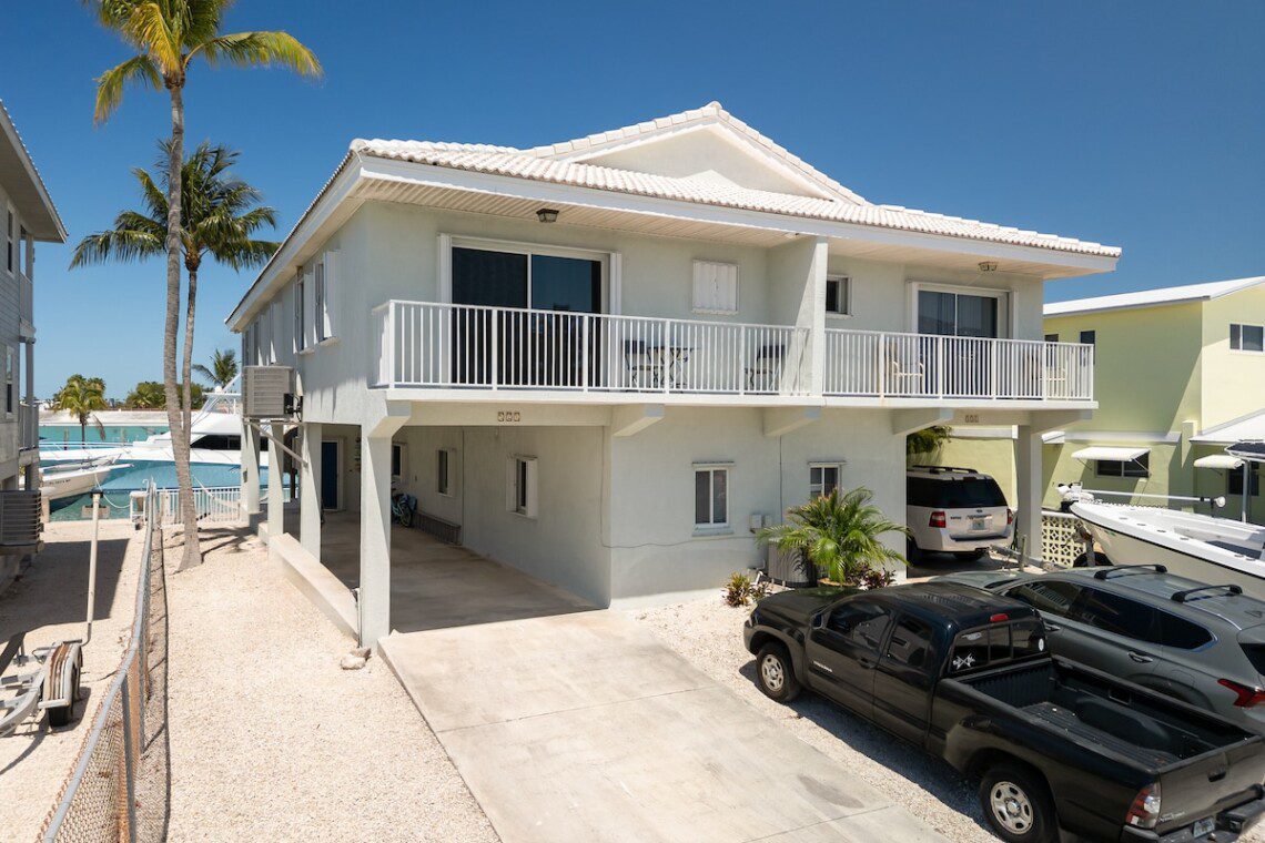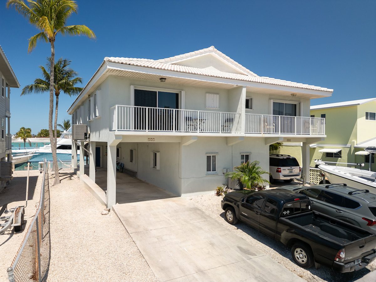 Casa sobre palafitas com 3 quartos e 2 banheiros, situada em um canal de águas cristalinas com vista para o mar aberto, em águas profundas, com vaga para barco de 9 metros em uma rua sem saída. A poucos passos de diversos restaurantes/bares, lojas e do Cabana Club, com praia, piscina e jacuzzi. Pátio à beira-mar cercado com quiosque. Ideal para crianças, com brinquedos e cadeirão. Estacionamento coberto. Os hóspedes devem assinar o formulário de Regulamentos da Praia de Key Colony.